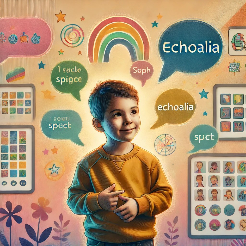 - Ecolalia scriptada: Repiten frases enteras que han escuchado, a menudo sin modificarlas. Por ejemplo, pueden decir «¡Es hora de la aventura!» cuando quieren salir al parque porque esa frase la asocian con una actividad emocionante.